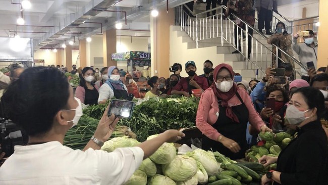 Pantauan detikcom, Kamis (20/1/2022), Puan awalnya berbincang dengan pedagang sayur di Pasar Legi. Dia menanyakan kebutuhan dan harapan pedagang itu.