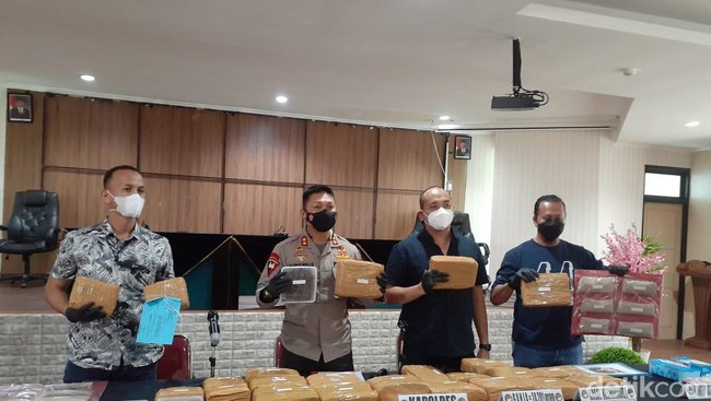 Kapolres Tangerang Selatan AKBP Sarly Sollu mengatakan total ada 24,2 kilogram barang bukti yang diamankan. Dia menjelaskan total barang bukti narkoba ini juga diamankan secara bertahap.