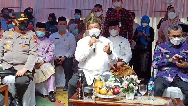 Menteri Dalam Negeri Tito Karnavian berkunjung ke Pekanbaru, Riau. Dalam kunjungannya, Tito melihat kegiatan percepatan vaksinasi COVID-19.