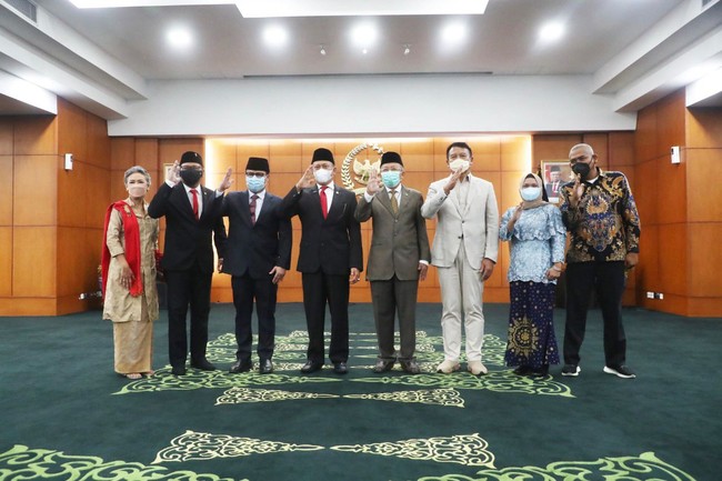 Ketua MPR RI Bambang Soesatyo melantik Harvey Malaiholo dari Fraksi PDI perjuangan dan Dian Istiqomah dari Fraksi PAN sebagai Anggota MPR RI, di Komplek MPR RI, Jakarta, Kamis (20/1). Bamsoet berharap kehadiran keduanya dapat membawa angin segar bagi peningkatan kualitas Sosialisasi Empat Pilar MPR RI.