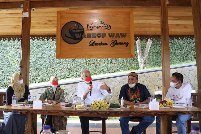 Gubernur Jawa Tengah (Jateng), Ganjar Pranowo bertemu dengan petani tembakau dan Dewan Perwakilan Cabang (DPC) Asosiasi Perangkat Desa Seluruh Indonesia (Apdesi) Lampung. Pada pertemuan di Warkop Waw, Sukadhanam, Bandar Lampung tersebut, Ganjar menerima aspirasi dari kepala desa (kades) soal Peraturan Presiden (Perpres) Nomor 104 Tahun 2021 yang dinilai memberatkan.