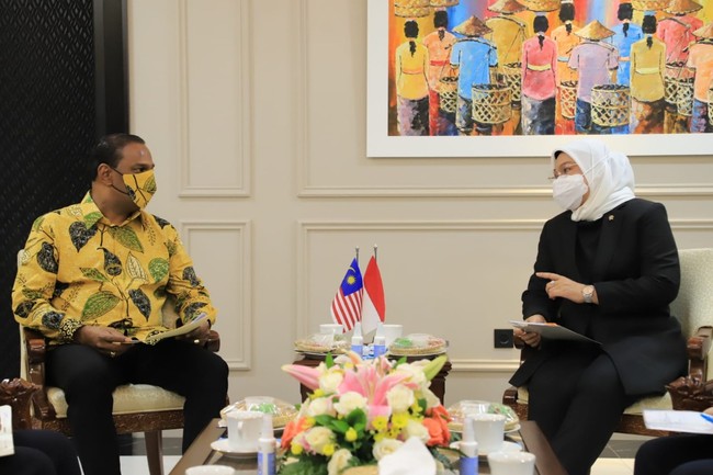 Kesepakatan tersebut terjadi dalam pertemuan antara Menteri Ketenagakerjaan RI, Ida Fauziyah, dengan Menteri Sumber Daya Manusia (SDM) Malaysia, Datuk Seri M. Saravanan, di kantor Kementerian Ketenagakerjaan (Kemnaker), Jakarta hari ini. Ida didampingi oleh Sekjen Kemnaker, Anwar Sanusi; Dirjen Binapenta dan PKK, Suhartono, Kepala Biro Kerja Sama, Muhammad Arif Hidayat, serta Direktur Bina Penempatan dan Pelindungan Pekerja Migran Indonesia, Rendra Setiawan.
