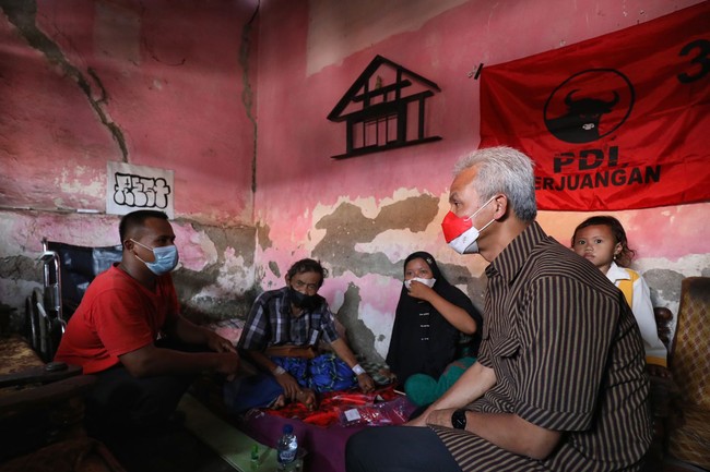 Gubernur Jawa Tengah, Ganjar Pranowo merenovasi Rumah Tidak Layak Huni (RTLH) di Pasar Batang, Brebes, Jawa Tengah. Rumah itu milik Atmo (62) yang merupakan kader Partai Demokrasi Indonesia Perjuangan (PDIP).