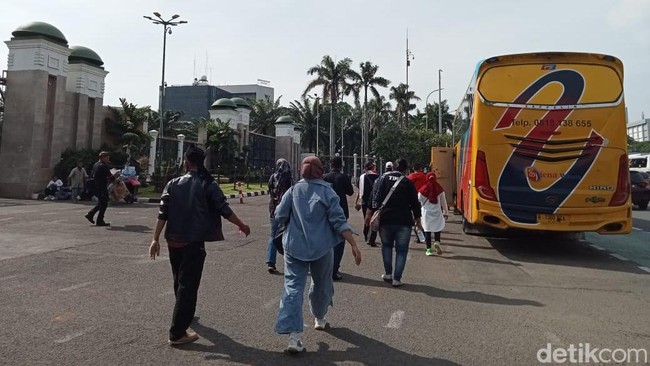 Pantauan di lokasi Kamis (27/1/2022), massa meninggalkan gedung DPR RI per pukul 15.15 WIB. Petugas kepolisian pun ikut membubarkan barisan.