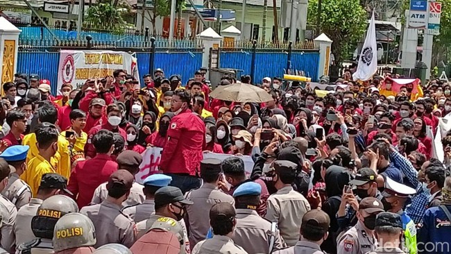Pantauan detikcom, Kamis (27/1/2022), ratusan mahasiswa menggelar aksi di depan kantor Kejati Kalsel, Jalan DI Pandjaitan, Kecamatan Banjarmasin Tengah, Kota Banjarmasin, Kalsel. Unjuk rasa berlangsung cukup lama di lokasi dan sempat diwarnai aksi teatrikal mahasiswa.