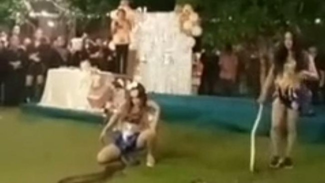 Dalam video yang beredar, terlihat sejumlah waria menari sambil memegang ular di acara itu. Mereka menari di tengah kerumunan warga yang menonton.