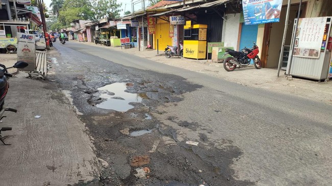 Pantauan detikcom di lokasi, Jumat (28/1/2022) nampak jalan rusak tersebut berada di dua titik. Pertama, di dekat jembatan layang perlintasan rel kereta api. Kedua, di dekat gang masuk SMP Muhammadiyah Pabuaran, Bojong Gede.