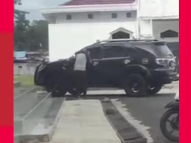 Berdasarkan video yang beredar, terlihat seorang pria menghampiri sebuah mobil Fortuner berkelir hitam sedang parkir. Pria itu sempat mengintip dari kaca jendela samping kiri.