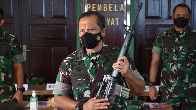 Hal tersebut disampaikan I Nyoman Cantiasa saat konferensi pers di aula Kodam XVIII/Kasuari, Trikora, Arfai 1, Manokwari, Papua Barat, Jumat (28/1/2022). Salah satu yang dibanggakan olehnya adalah berhasil mengamankan 15 pucuk senjata di antaranya 6 pucuk Mauser, 1 pucuk AR-15, 1 pucuk SA VZ 61 Scorpion, 1 pucuk laras panjang rakitan, 4 pucuk pistol revolver, 1 pucuk pistil Baikal Makarov, dan 403 butir munisi berbagai kaliber.