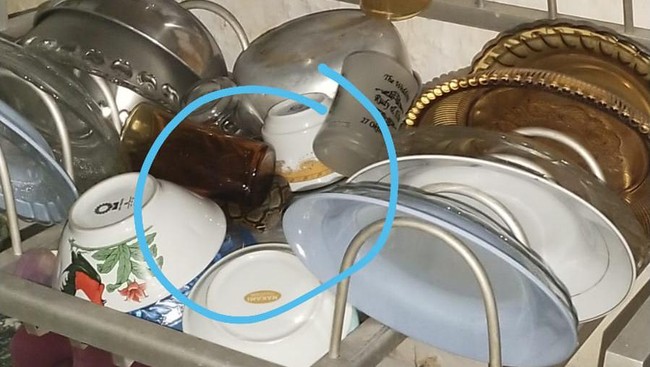 Kemunculan ular sanca ini terjadi Sabtu (29/1/2022). Ular muncul sekitar pukul 23.45 Wita, di rak piring warga.
