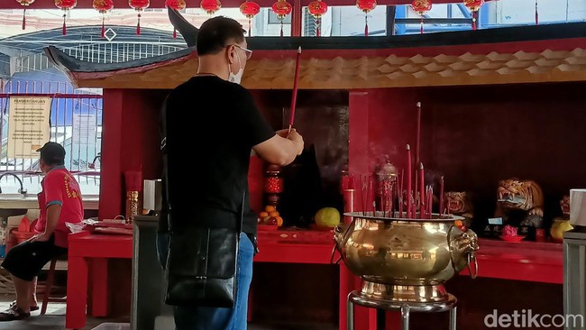 Tak hanya itu, umat Konghucu terlihat membakar dupa. Di lokasi, tak terlihat kepadatan jemaat yang beribadah.