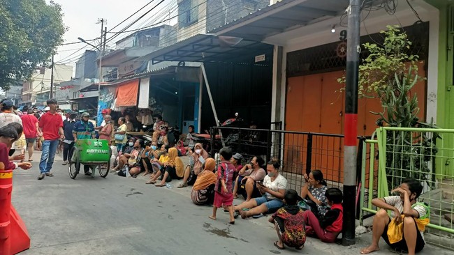 Pantauan di lokasi, Selasa (1/2/2022), warga peminta angpao menyebar di sekitar kawasan Vihara Dharma Bakti. Banyak dari mereka terlihat berkerumun satu sama lain.