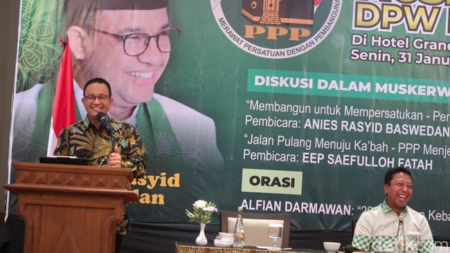 "Beliau diundang oleh DPW PPP DIY untuk menghadiri Mukerwil dan puncak harlah PPP ke-49. Sebagai salah satu pemateri, kan harus duduk di depan, to?" kata Awiek kepada wartawan, Rabu (2/2/2022).