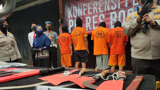 "Jadi pengakuan dari salah satu tersangka utama yang memang sudah kita tangkap juga, sudah melakukan pembacokan di wilayah Bogor sebanyak tujuh kali. Keterangannya dari 2021 sampai sekarang," ujar Kasat Reskrim Polres Bogor AKP Siswo Tarigan kepada wartawan, Rabu (2/2/2022).