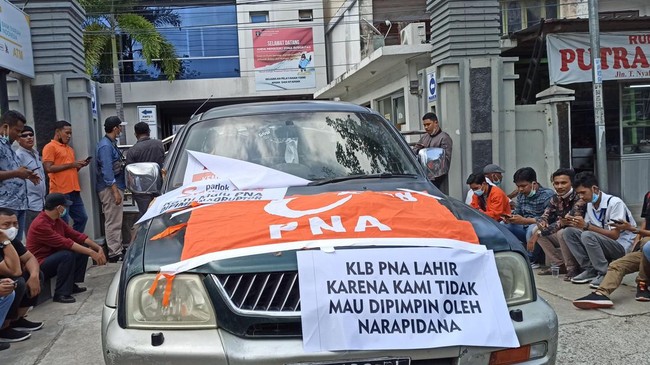 Selain itu, ada spanduk bertulisan 'Kepada Kakanwil Menkumham cabut dan batalkan SK no: W1-418.AH.01 tahun 2021 segera sahkan KLB PNA'. Perwakilan massa sempat beraudiensi dengan pihak Kemenkumham Aceh.