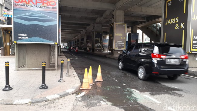 Kondisi basah ini hanya ditemukan di sekitar 10 meter selebar setengah badan jalan. Lokasinya ada di bawah Stasiun MRT Haji Nawi. Sementara, ruas permukaan di sekitarnya tetap kering.