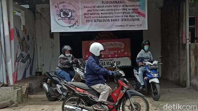 "Ternyata benar ada dua orang di motor di depan studio dan rolling door sudah terbuka, ditutupi karangan bunga," sambung Rangga.