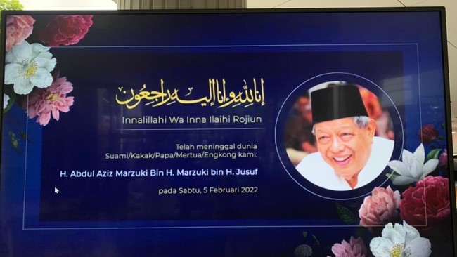Jenazah Abdul Aziz Marzuki, mertua Menteri Pariwisata dan Ekonomi Kreatif (Menparekraf) Sandiaga Uno, akan dimakamkan di area taman Masjid Attaqwa Sriwijaya, Kebayoran Baru, Jakarta Selatan. Almarhum Abdul Aziz disebut sejak jauh-jauh hari berpesan ingin dimakamkan di Masjid Attaqwa Sriwijaya.