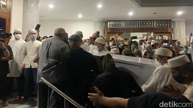 Suasana haru mengiringi prosesi saat jenazah ayah Nur Asia Uno di makamkan. Pantauan detikcom, pukul 19.30 WIB, Minggu (6/2/2022), jenazah Abdul Aziz tiba di Masjid Attaqwa. Jenazah langsung dibawa ke ruang VIP yang hanya dihadiri oleh keluarga inti.