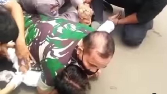 Viral di media sosial potongan video personil TNI yang menindih seorang pria berkemeja putih di jalanan. Potongan video itu bernarasi kalau anggota TNI sedang memaksa pria berkemeja itu untuk vaksin di wilayah Depok.