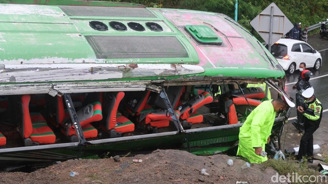 "Dari keterangan, saksi melihat sopir panik sambil mempermainkan persneling. Sehingga ada indikasi rem blong sehingga main persneling gigi saat turun ke bawah," kata Ihsan.