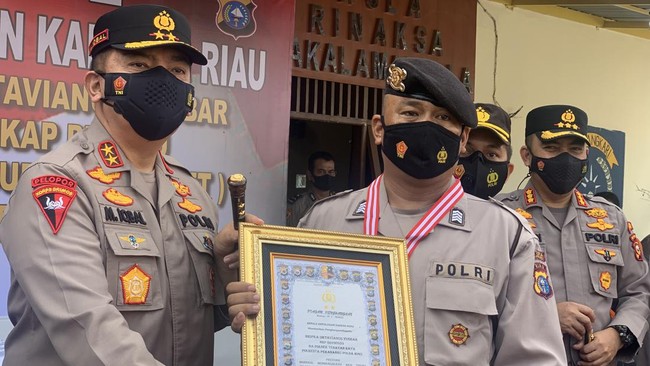 "Kehadiran saya ini selaku Kapolda adalah ingin menyapa Bripka Oktavianus. Dia beberapa hari ini jadi trending topic karena aksi heroik yang patut diacungkan jempol dan patut jadi suri tauladan kami semua," ujar Iqbal di Mapolsek Tenayan Raya, Senin (7/2/2022).