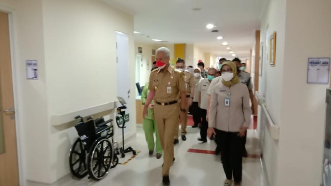 Ganjar menjalani operasi dan dirawat di RSUP dr Kariadi Semarang pada Minggu (6/2). Pagi ini, Ganjar langsung memantau penanganan COVID-19 di RSUP dr Kariadi Semarang. Ia didampingi Direktur Utama (Dirut) RSUP dr Kariadi, Farichah Hanum.