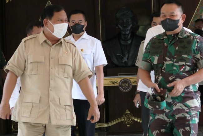 Menteri Pertahanan (Menhan) Prabowo Subianto menerima kunjungan Kepala Staf Angkatan Darat (KSAD) Jenderal Dudung Abdurachman. Dalam pertemuan tersebut, Prabowo sempat memuji Dudung sebagai pemimpin TNI AD.