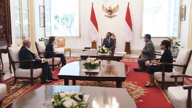 "Mekanisme dialog 2+2 kita akan menjadi forum yang strategis untuk wujudkan visi Indo-Pasifik yang damai dan sejahtera," ungkap Jokowi.