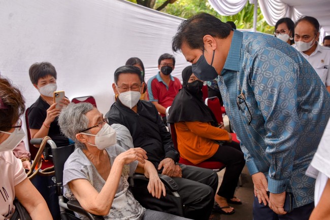 "Pemerintah terus mendorong vaksinasi booster, tentunya vaksinasi booster ini diperlukan untuk menghadapi varian Omicron. Dalam menghadapi Omicron ini tentunya salah satu yang paling berisiko adalah lansia. Oleh karena itu, lansia ini diprioritaskan," kata Airlangga dalam keterangan tertulis, Kamis (10/2/2022).