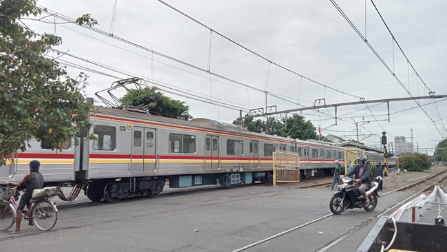 Seorang pria pengendara motor berboncengan dengan anaknya nekat menerobos palang pintu perlintasan di Jl Garuda, Kemayoran, Jakarta Pusat. Motor korban terserempet kereta dari Jawa hingga anaknya terluka.