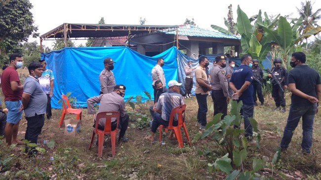 Pantauan detikcom di lokasi, Sabtu (12/2/2022), tampak Dirreskrimum Polda Sumut Kombes Tatan Dirsan Atmaja, Kabid Humas Polda Sumut Kombes Hadi Wahyudi, dan sejumlah petugas dari Polda Sumut berada di lokasi kuburan.
