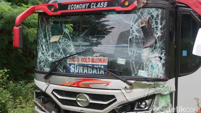 Dilansir detikJateng, Minggu (13/2/2022), bus Mira itu masih berada di sekitar lokasi kejadian. Bagian kaca depan bus Mira itu pecah akibat menabrak 8 kendaraan tersebut.