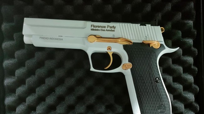 Menurut Dahnil, Menteri Prancis Parly sudah pernah dihadiahi Keris oleh Prabowo. Lantas, kali ini Prabowo menghadiahi pistol G2 Elite yang diproduksi PT Pindad.