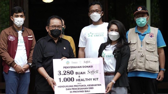 Enesis Group memberikan bantuan berupa 3.280 buah Soffell dan 1000 healthy kit yang diterima secara simbolis oleh Wakil Gubernur Bali Tjokorda Oka Artha Ardana Sukawati atau yang akrab disapa Cok Ace. Healthy Kit berisi masker, Antis Hand Sanitizer, Plossa Minyak Aromaterapi, Soffell Anti Nyamuk, Scrubber dan vitamin Amunizer. Produk-produk kesehatan dari Enesis ini diharapkan dapat melindungi masyarakat Bali khususnya para pedagang untuk senantiasa aman dan sehat.