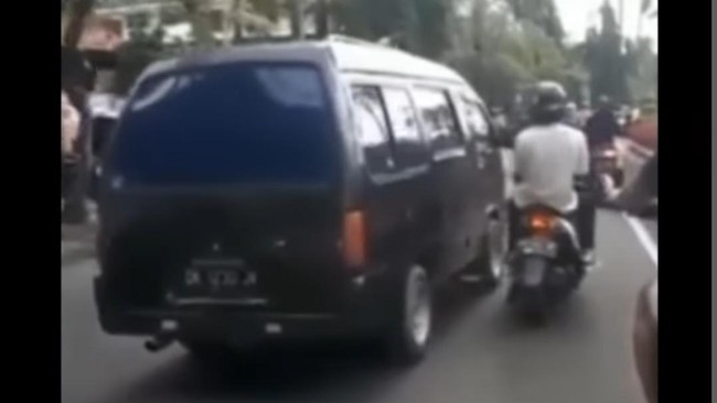 Terlihat juga dalam video, seorang pengendara motor yang membonceng temannya memepet mobil tersebut dari sebelah kanan. Saat posisi sejajar dengan sopir, pria yang dibonceng sepeda motor kemudian menggedor-gedor kaca mobil yang sedang melaju.