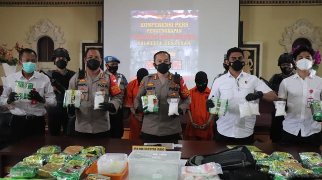 "Untuk AR dan MA sendiri, yaitu bertugas membawa. Dengan jumlah narkoba sebanyak ini, mereka akan diberi imbalan Rp 65 juta dari inisial M dan F," kata Kapolresta Denpasar AKBP Bambang Yugo Pamungkas, Selasa (22/2/2022).