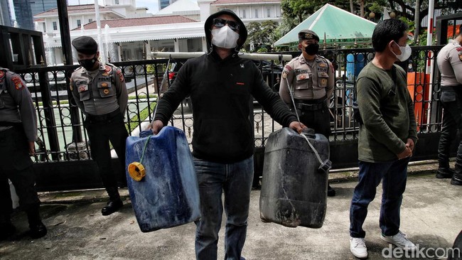 Sebelumnya, sejumlah warga Muara Angke mendatangi gedung Balai Kota DKI Jakarta. Mereka membawa jeriken dan meminta Pemprov DKI membuatkan kios air karena mengalami krisis air bersih.