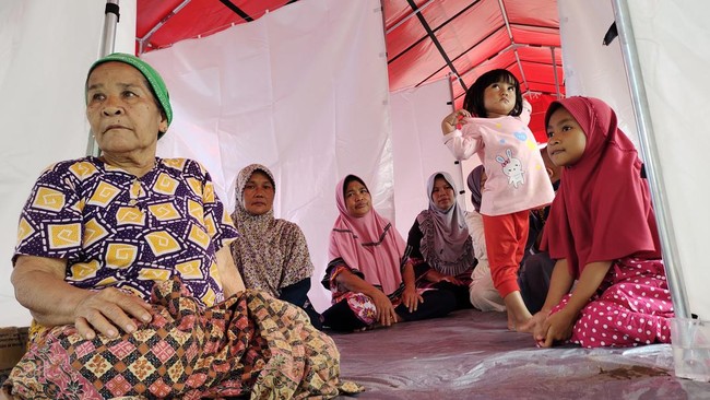 "Sama orang-orang, sama orang tua semuanya di sini. Laki-laki di sini (rumah), perempuan di tenda pengungsian," ujar salah satu warga, Indri, kepada awak media, Rabu (23/2/2022).