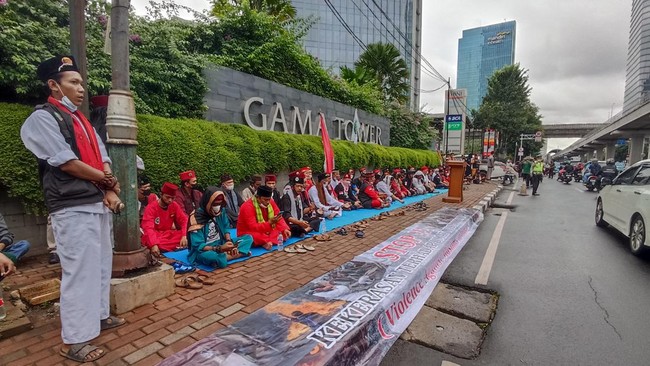 Pantauan detikcom di lokasi, Senin (29/11/2021), pukul 10.30 WIB, massa aksi sudah berdatangan. Seorang koordinator lapangan massa, Aboy Maulana, mengatakan mereka berasal dari Jajaka Nusantara.