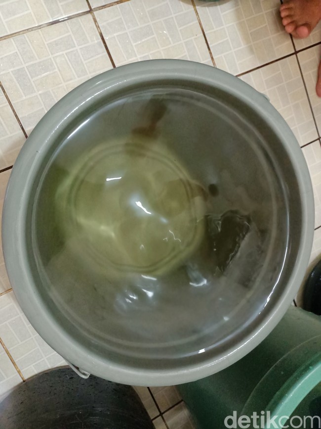 "Kadang kalau air baru keluar itu bau kaporit," ungkapnya. "Air ini nggak layak pakai," sambungnya.