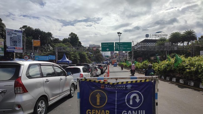 Ganjil genap juga diterapkan di Simpang Gadog menuju arah Puncak. Kendaraan yang pelatnya tidak sesuai aturan diminta putar balik.