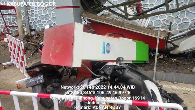 "Hujan dengan intensitas tinggi disertai angin kencang mengakibatkan tembok pembatas milik SPBU roboh dan menimpa pompa bensin untuk kendaraan roda dua dan tempat pengisian angin nitrogen. Kemudian menimpa lima unit kendaraan roda dua milik karyawan," kata Kasi Kedaruratan BPBD Kabupaten Bogor, M Adam, kepada wartawan, Sabtu (26/2/2022).
