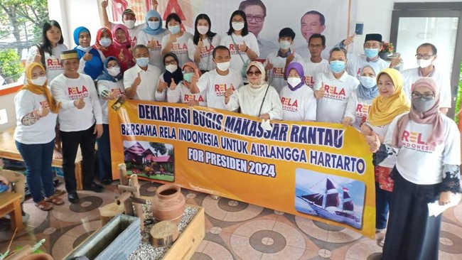 Masyarakat berdarah Bugis di Jakarta deklarasi memberi dukungan kepada Ketum Partai Golkar Airlangga Hartarto maju di Pilpres 2024. Mereka mengapresiasi kerja Airlangga sebagai Menko Perekonomian.
