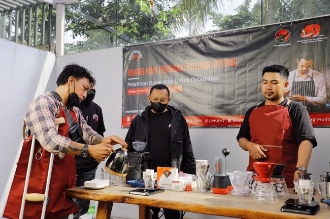 Dalam rangka mengembangkan kopi di Indonesia, Banteng Muda Indonesia (BMI) menggelar pelatihan dasar kopi bagi komunitas disabilitas. Acara ini dilaksanakan di Ruko Khafi One, Ciganjur, Jagakarsa, Jakarta Selatan.