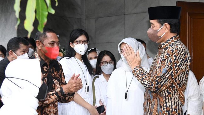 Presiden tiba di rumah duka sekitar Senin (28/2/2022) pukul 09.52 WIB. Setiba di rumah duka, Jokowi disambut oleh putra almarhum, Triyono Budi Warsito, selaku perwakilan keluarga.