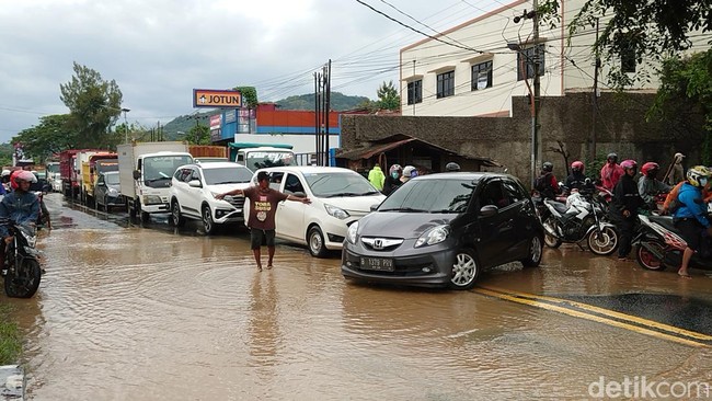 Tak hanya menyebabkan kendaraan mati mesin, air yang menggenangi jalan itu juga berdampak pada kemacetan. Kemacetan di kedua arah, baik dari Serang maupun Cilegon.