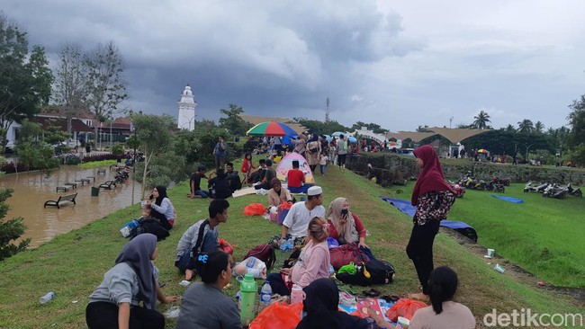 "Air kelihatan dari kejauhan agar waspada dan jangan panik, langsung naik cari tempat tinggi ya di keraton ini," sambungnnya.
