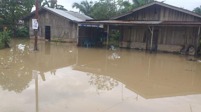 "Rumah penduduk yang terendam banjir ini diakibatkan meluapnya air sungai yang di akibatkan juga pendangkalan saluran sungai akibat tingginya curah hujan," jelas Husin.