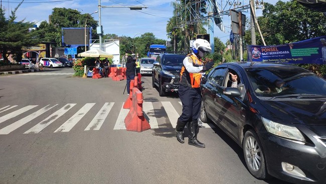 Pantauan detikcom di Simpang Gadog sekitar pukul 12.58 WIB, one way belum diberlakukan. Namun petugas tetap memantau arus lalu lintas di Simpang Gadog.